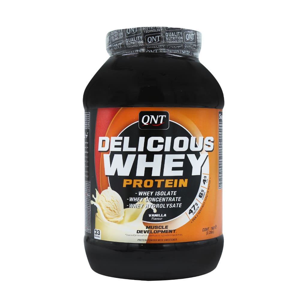 پودر دلیشس وی کیو ان تی یک مکمل تغذیه‌ای حرفه‌ای برای ورزشکاران است که با ترکیبی از پروتئین وی ایزوله، کنسانتره و هیدرولیز شده، به تأمین پروتئین مورد نیاز بدن، افزایش حجم عضلانی و جلوگیری از تحلیل عضلات کمک می‌کند. این محصول با ۷۷٪ پروتئین خالص در هر سروینگ، جذب سریع و طعم‌های متنوع، انتخابی مناسب برای دوره‌های حجم، کات یا ریکاوری پس از تمرین است. فاقد گلوتن بوده و تحت لیسانس بلژیک در ایران تولید می‌شود.