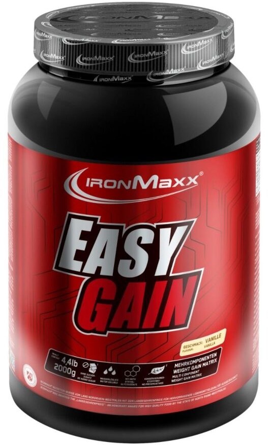 ایزی گین آیرون مکس آلمان یک محصول باکیفیت جهت افزایش وزن به همراه عضلهسازی است. ایزی گین دارای کربوهیدرات و پروتئین به نسبت ۴ به ۱ است و برای افرادی که به سختی وزن میگیرند بسیار مناسب است. همچنین در افزایش توان بدنی ورزشکاران بسیار موثر خواهد بود. ایزی گین آیرون مکس به خوبی و با بالاترین کیفیت به ورزشکاران وزن و حجم عضلانی داده و به مقدار قابل توجهی در تامین آمینواسیدها و گلوتامین به ورزشکاران کمک میکند. ویژگی حائز اهمیت این محصول مقدار ناچیز شکر و چربی در این مکمل ورزشی است.